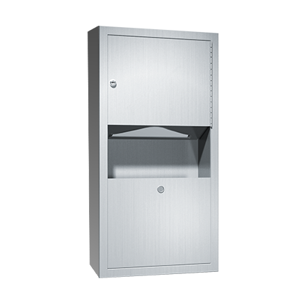 Dispenses 350 C-fold or 475 multi-fold paper towels. 2 gal. (7.6 L) waste receptacle.