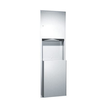 Dispenses 600 C-fold or 800 multi-fold paper towels. 12 gal. (46 L) stainless steel waste receptacle.