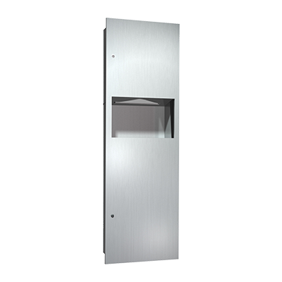 Dispenses 800 multi-fold, or 600 C-fold towels, standard. Provided adapter allows the flexibility to change the capacity to up to 1,100 single-fold paper towels. 9 gal. (34 L) stainless steel waste receptacle.