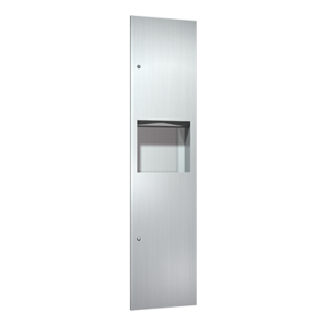 Paper towels are manually withdrawn through dispensing slot. An adjustable towel adapter ensures that towels feed properly until depleted. Unit will continue to feed properly when reloaded with a partial load in place. Refill dispenser by unlocking door and replacing towels for an empty or partially empty unit. Locking full-face door over compartments prevents unauthorized access or removal.